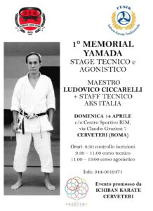 1° Memorial Toshio Yamada Shiro Karate-Kai Segreteria 22/03/2024 Eventi 14 Aprile 2024 Via Claudio Graziosi 7 – Cerveteri