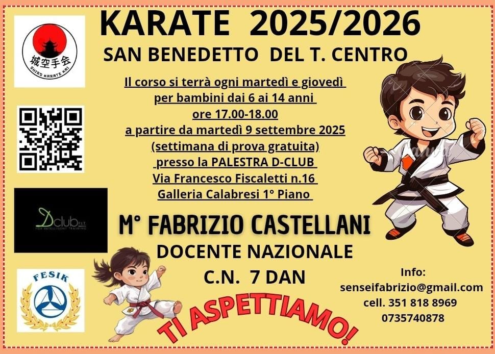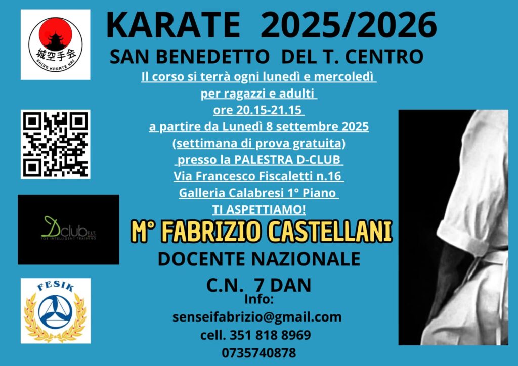 Da Settembre 2025 iniziano i nuovi corsi di Karate Shotokan e Kyokushin kai a San Benedetto del Tronto con il M° F. Castellani 7° Dan e Tecnico Federale.